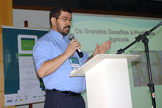 Identidade visual de seminário temático realizado pela Embrapa sobre o uso do sorgo sacarino para a produção de etanol.